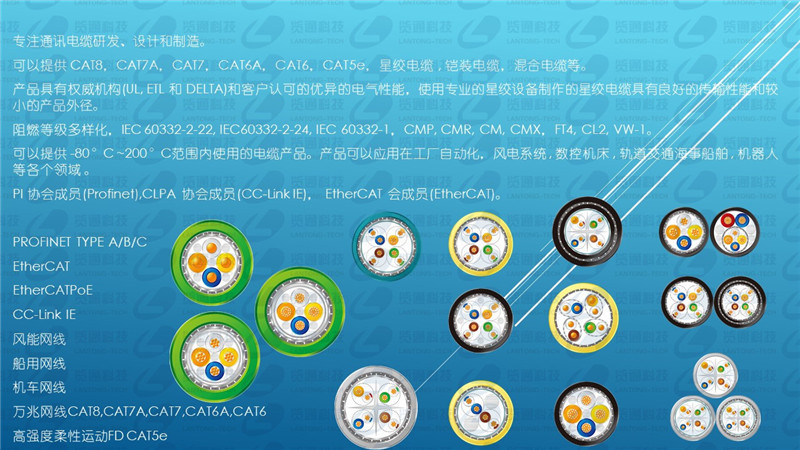 专为PROFINET协议设计,用于广泛的工业以太网场合应用,如机器,设备,仪器和控制柜等的布线,性能符合CAT5e.适用于拖链应用,或频繁移动适用。机器人运动控制场合, 可适用于 EtherCAT 和 EtherNet/IP 应用